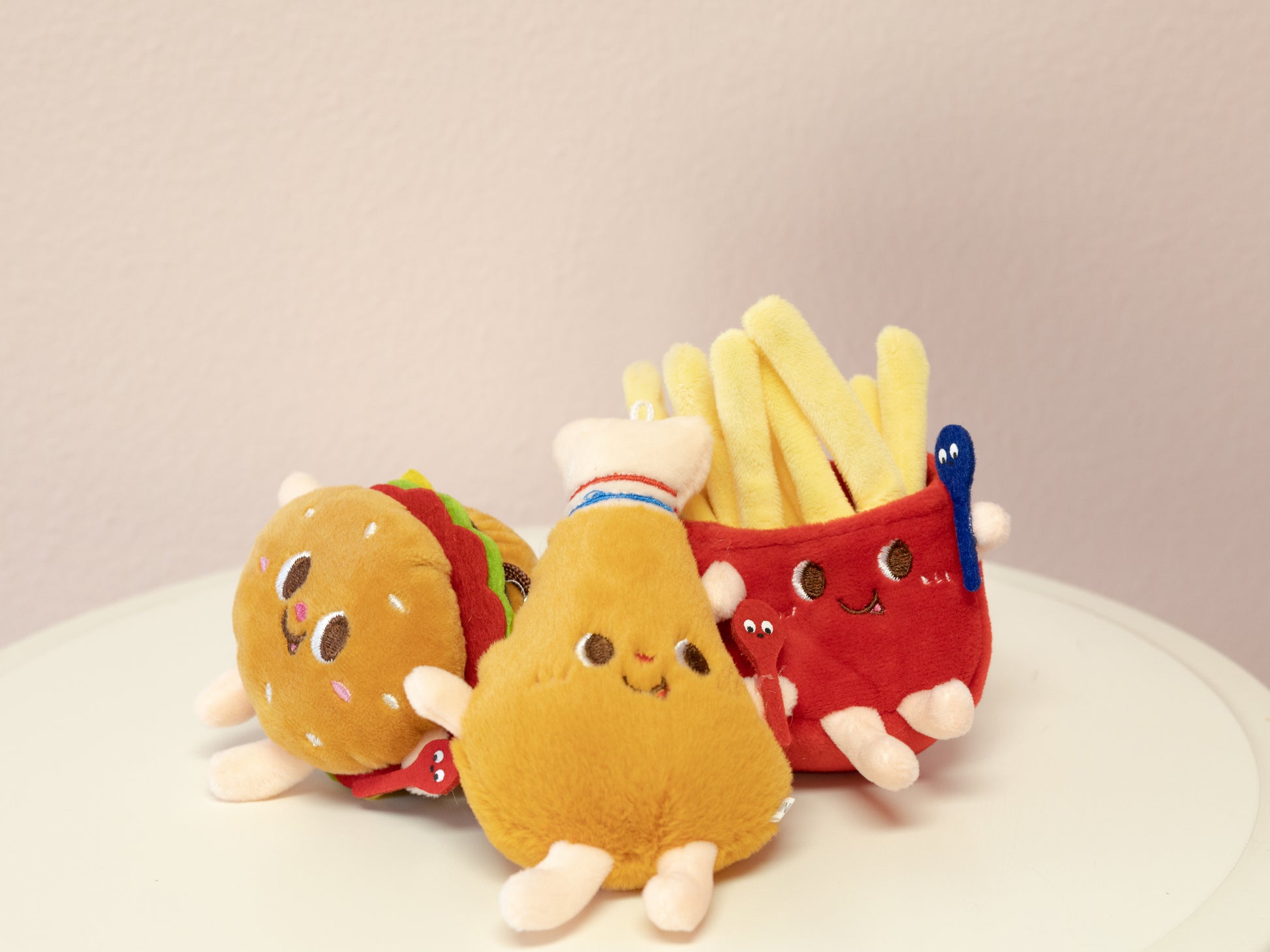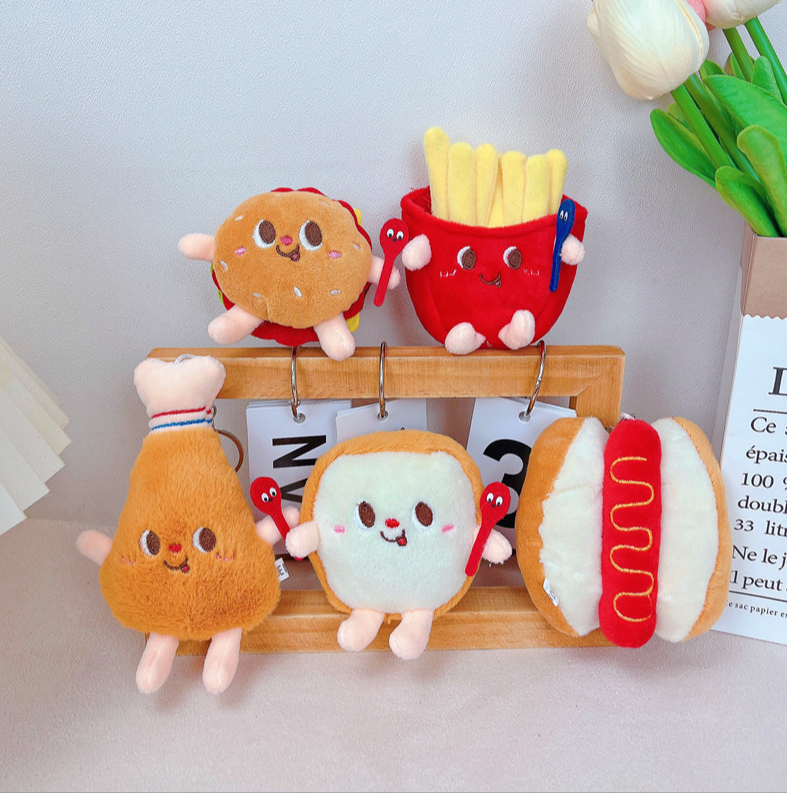 These deliciously cute food plushie keychains will have you craving burgers, fries and chicken in no time! πππ Please note: NOT edible, just cute. Hook them on to your backpack, purse, or keys for a yummy addition to your outfit. Also makes great stocking stuffers and trinket gifts for friends and family.