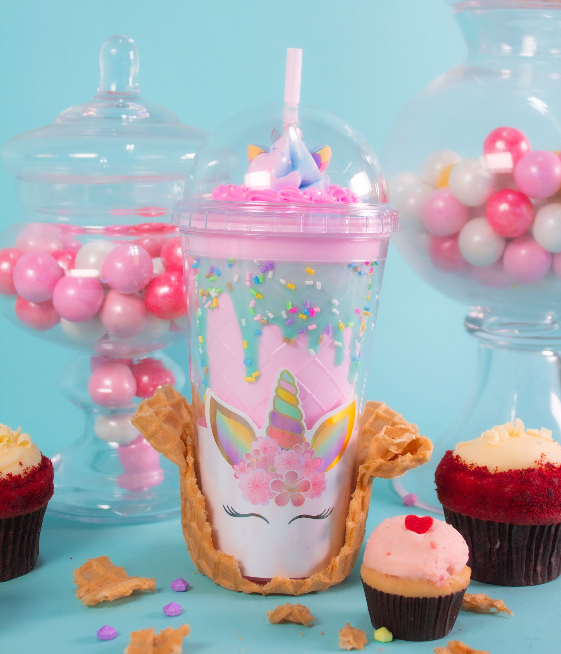Let's get the party started! Our brand new unicorn sprinkle/frosting tumblers are fun, sweet, and perfect for party favors as well as gifting! Features a pop-up silicone sippy straw for drinking convenience.